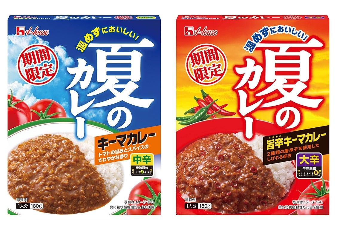 ハウス食品は、夏季限定のレトルトカレー「夏のカレー」<キーマカレー中辛><旨辛キーマカレー大辛>を、5月16日からスーパーなどで、数量・期間限定で発売します。温めずにそのままご飯にかけるだけで、“さわやかな香りと辛さのカレー”が楽しめる本製品は、テレワークなどで増加した自宅での食事機会や、非常時のストック需要を取り込み、夏の定番メニューを目指します。内容量180g、オープン価格(税別参考小売価格155円)。