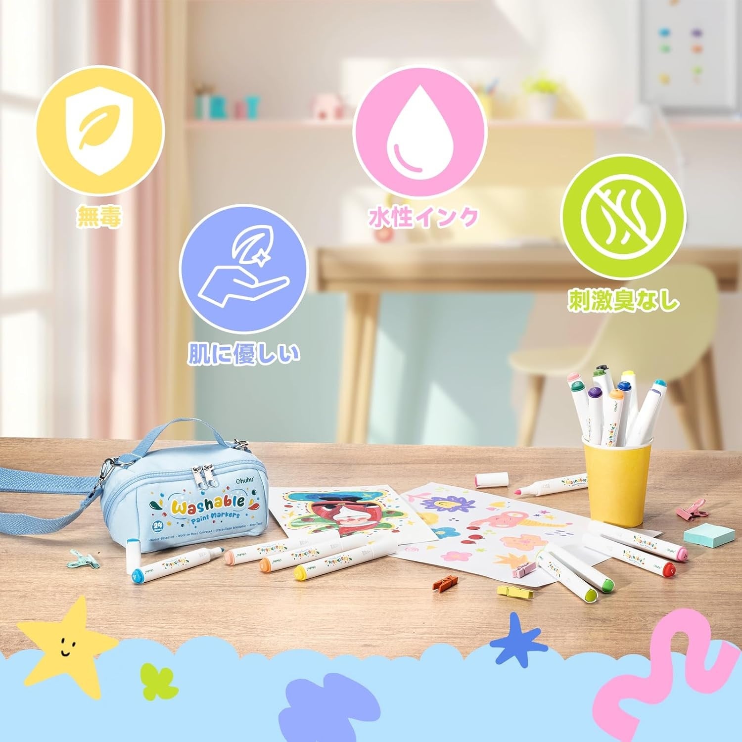 手についてしまっても簡単に落とせるので、お子様でも安心してご使用いただけます!不透明な水性インクでマットな質感に🌈