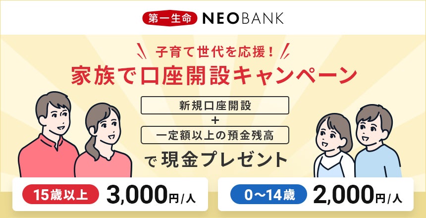 第一生命NEOBANK、「家族で口座開設キャンペーン」を実施