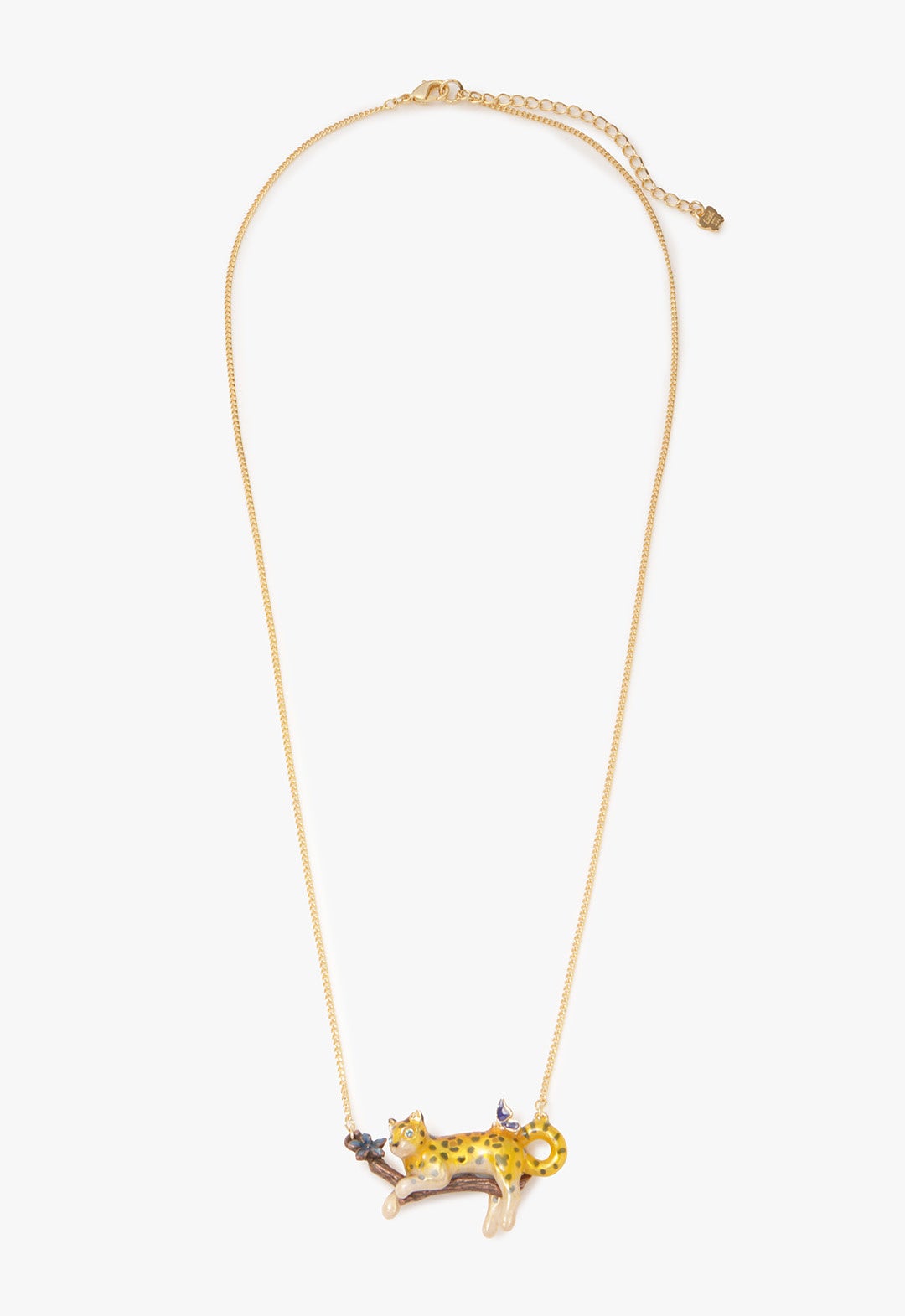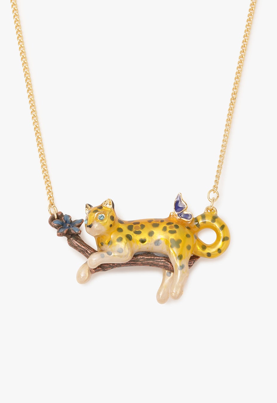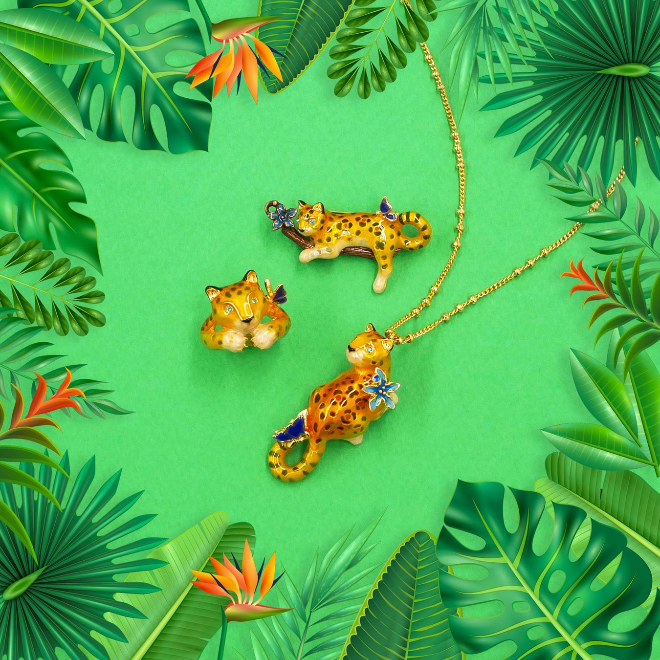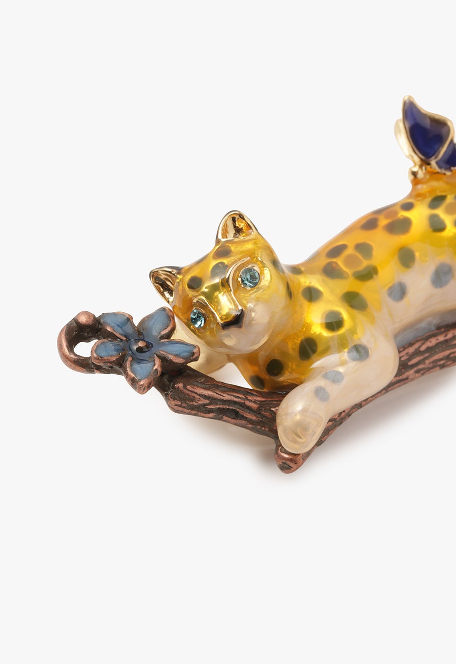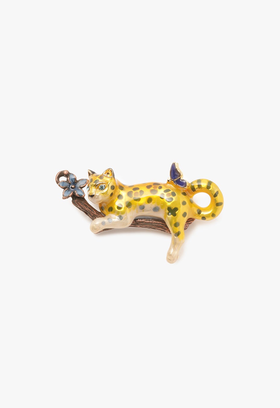 樹上での生活を好むヒョウのポーズを切り取ったブローチ。