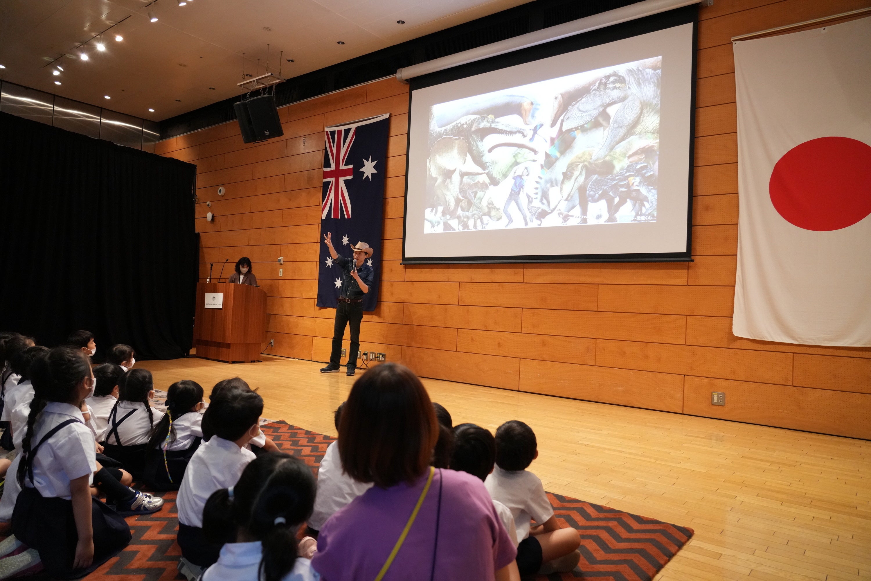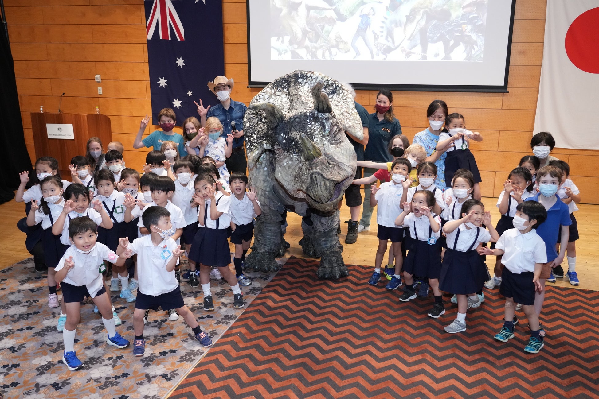 家族全員で楽しく学べるリアル恐竜ショー「恐竜パーク」プレイベントをオーストラリア大使館で開催