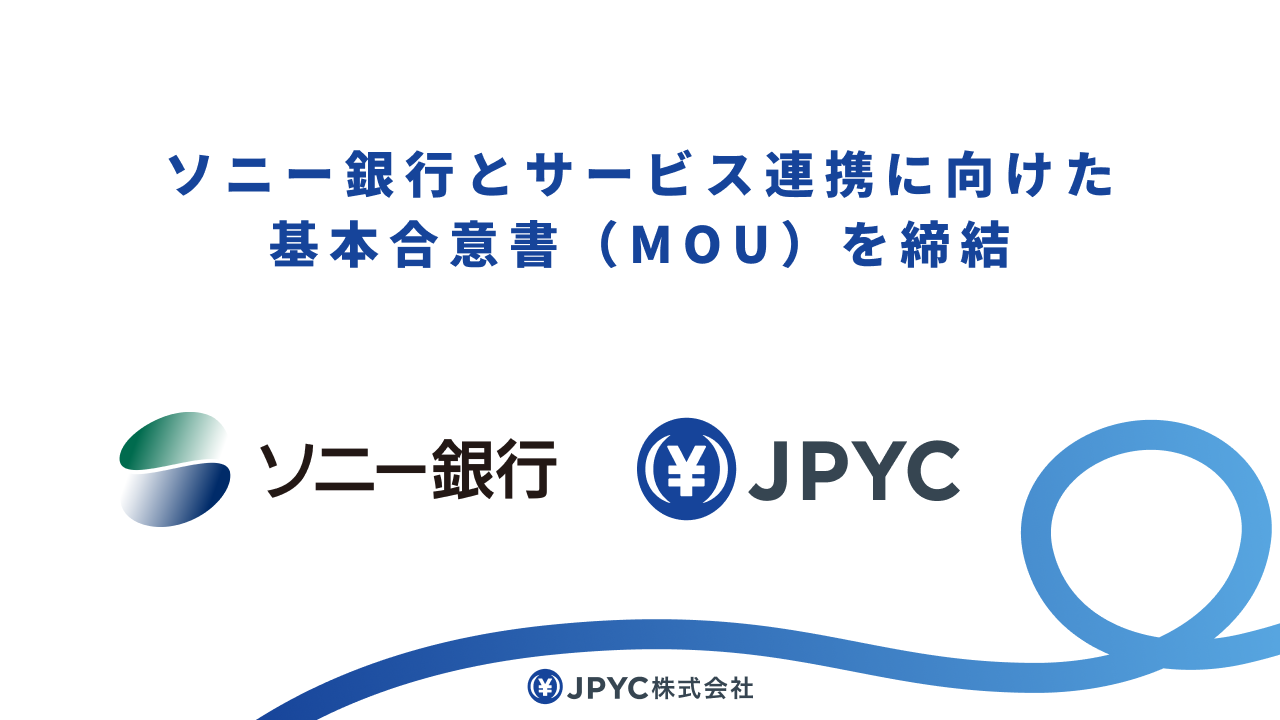 ソニー銀行と日本円ステーブルコイン「JPYC」を活用したサービス連携に向けた基本合意書(MOU)を締結