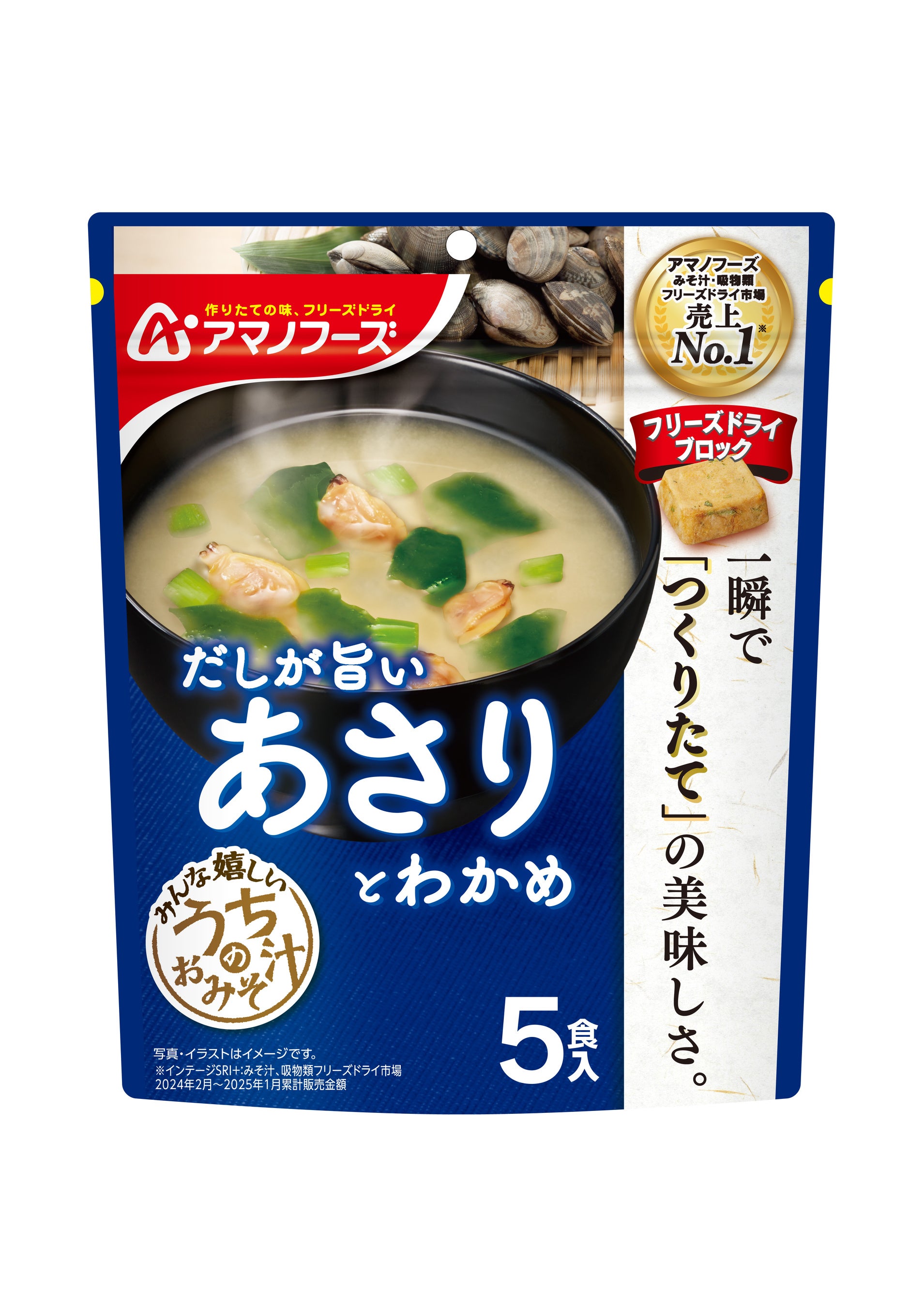 アサヒグループ食品株式会社(本社 東京、社長 川原浩)は、フリーズドライ「アマノフーズ」ブランドから『うちのおみそ汁 あさりとわかめ 5食』を3月3日から発売します。