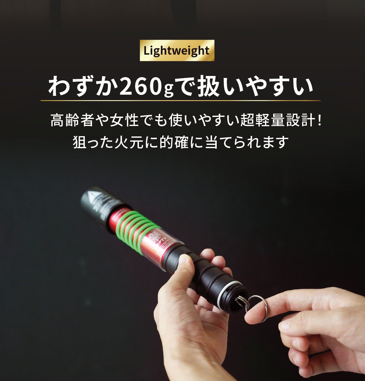 ☑【誰でも使える】軽さと直感的操作で初動消火をサポート