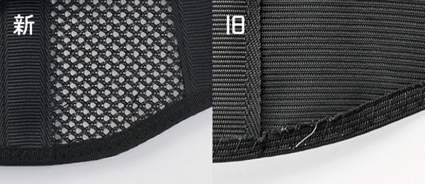 これまでは生地の特性上、端からほつれた糸が出てしまうことがありました。そこで、周囲を巻いているテープの素材を変更し、糸が飛び出しにくくなりました。