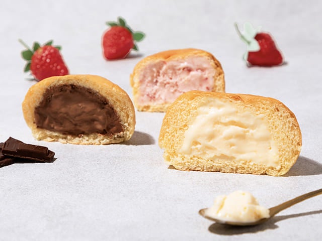 人気のフレーバー「カスタード」「チョコレート」「あまおう苺」をご用意しました。