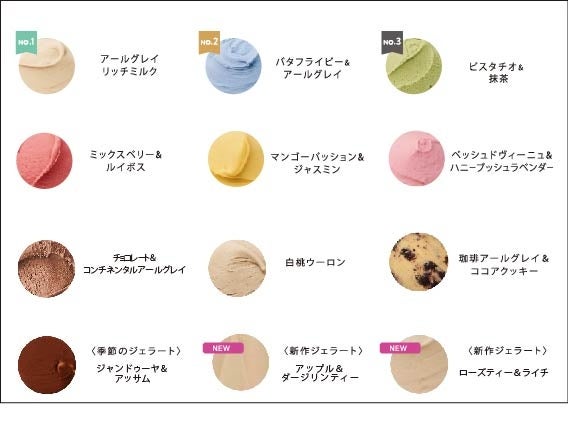華やかなバラの香りを楽しむダージリン&バラのアールグレイとフルーティーでみずみずしいライチで作った新作ジェラート。