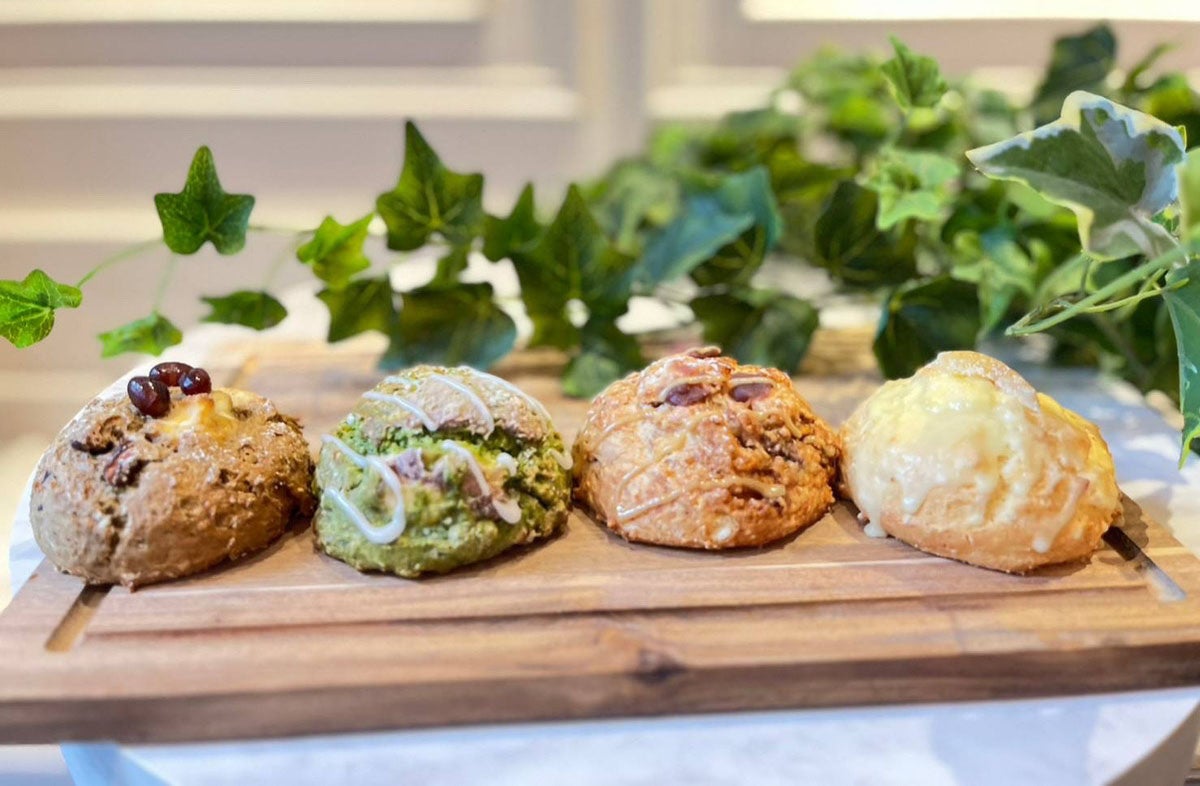 今回オススメのスコーンはクリームチーズはもちろん、あんこをたっぷり練り込んだ「ほうじ茶&大納言」、「抹茶&あんこ」、「黒蜜きなこ」、「ゆずレモン&しろあん」の4種類。