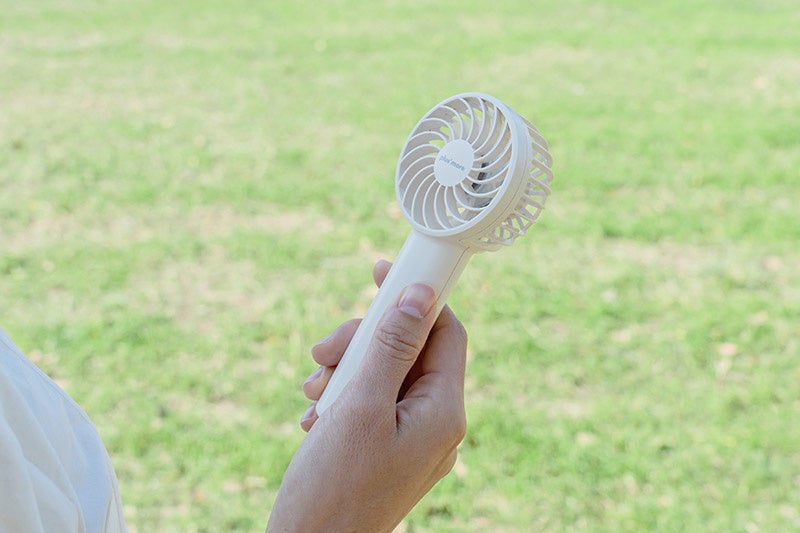 グリップを細く本体をコンパクトに設計し、握りやすく持ち運びやすいハンディファン。小ぶりなサイズ感ながら7枚羽根を採用し、大風量を実現。