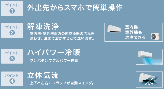 ・空気洗浄機能付き自動お掃除Wi-Fiエアコン
