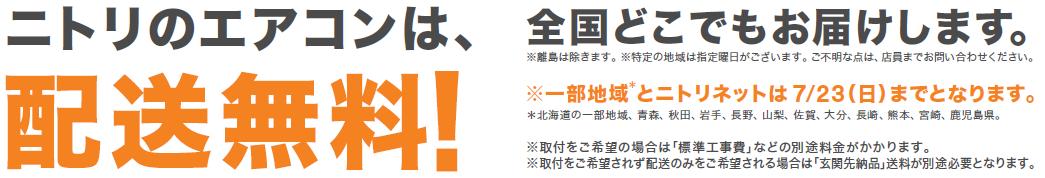 【キャンペーン詳細】https://www.nitori-net.jp/ec/feature/airconditioner/