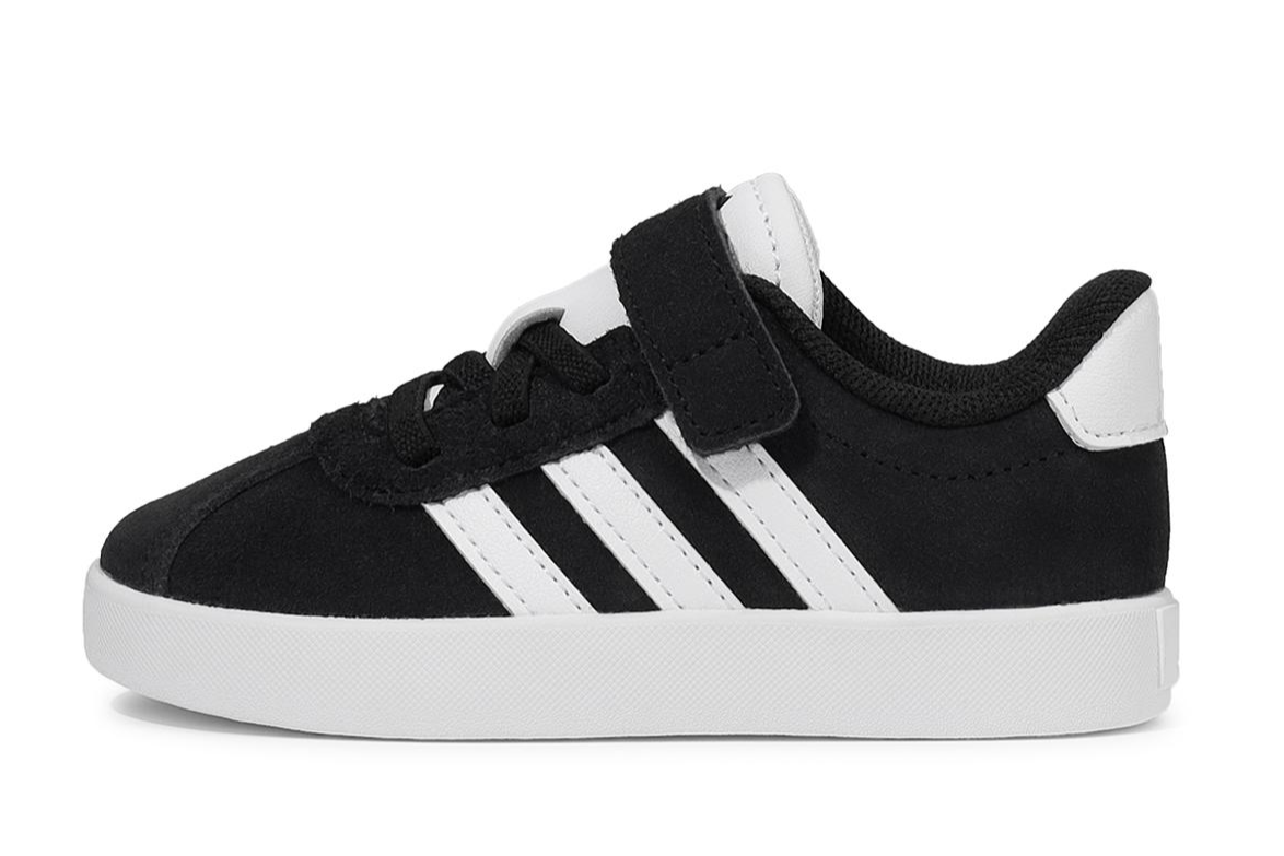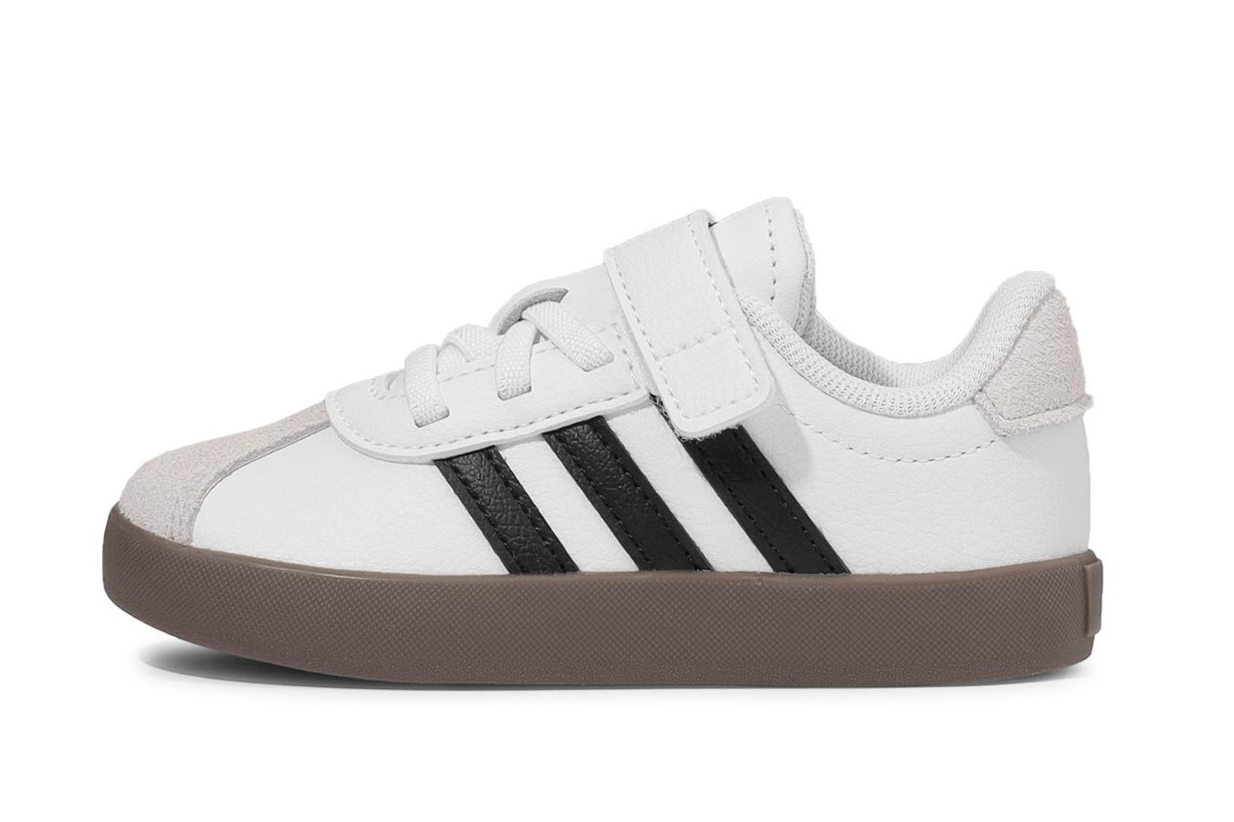 スリーストライプスのデザインがアクセントになったアディダスのローカットスニーカー「VL COURT 3.0」は、世代を問わず人気のクラシックモデルです。今回登場する「VL COURT 3.0」は、大人サイズのデザインを踏襲したスタイリッシュさを持ち合わせつつ、キッズ・ベビー向けとして、履きやすさと動きやすさに配慮した仕様です。お子様が自分で脱ぎ履きしやすいマジックテープ式のベルトストラップをはじめ、クッション性のあるテキスタイルライニング(裏地)、丈夫で柔らかいバルカナイズ製のラバーアウトソールを組み合わせています。履き心地はもちろん、快適で丈夫な設計のため、動き回るお子様の小さな足に素早くフィットする強い味方です。大人顔負けのデザイン性で合わせやすいカラーバリエーションにより、キッズコーディネートも格段とスタイルアップすること間違いなし!公園や旅行などお出かけのパートナーとしてお選びいただけます。