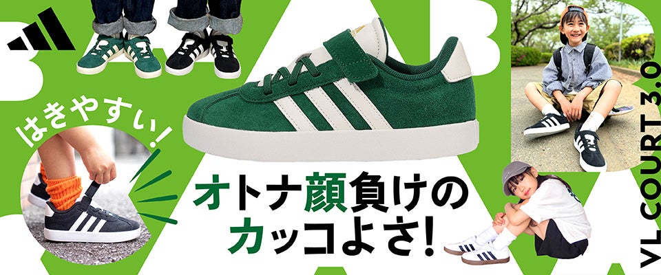 オトナ顔負けのデザイン性で子ども達のコーディネートを彩る!スリーストライプスが印象的なローカットキッズスニーカー「adidas VL COURT 3.0」キャンペーン