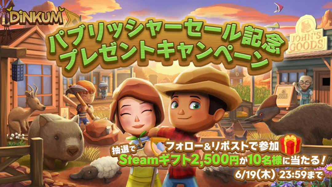 『Dinkum(ディンカム)』日本公式Xアカウントにて、Steamギフトコードが当たるフォロー&リポストキャンペーンを開催しております。