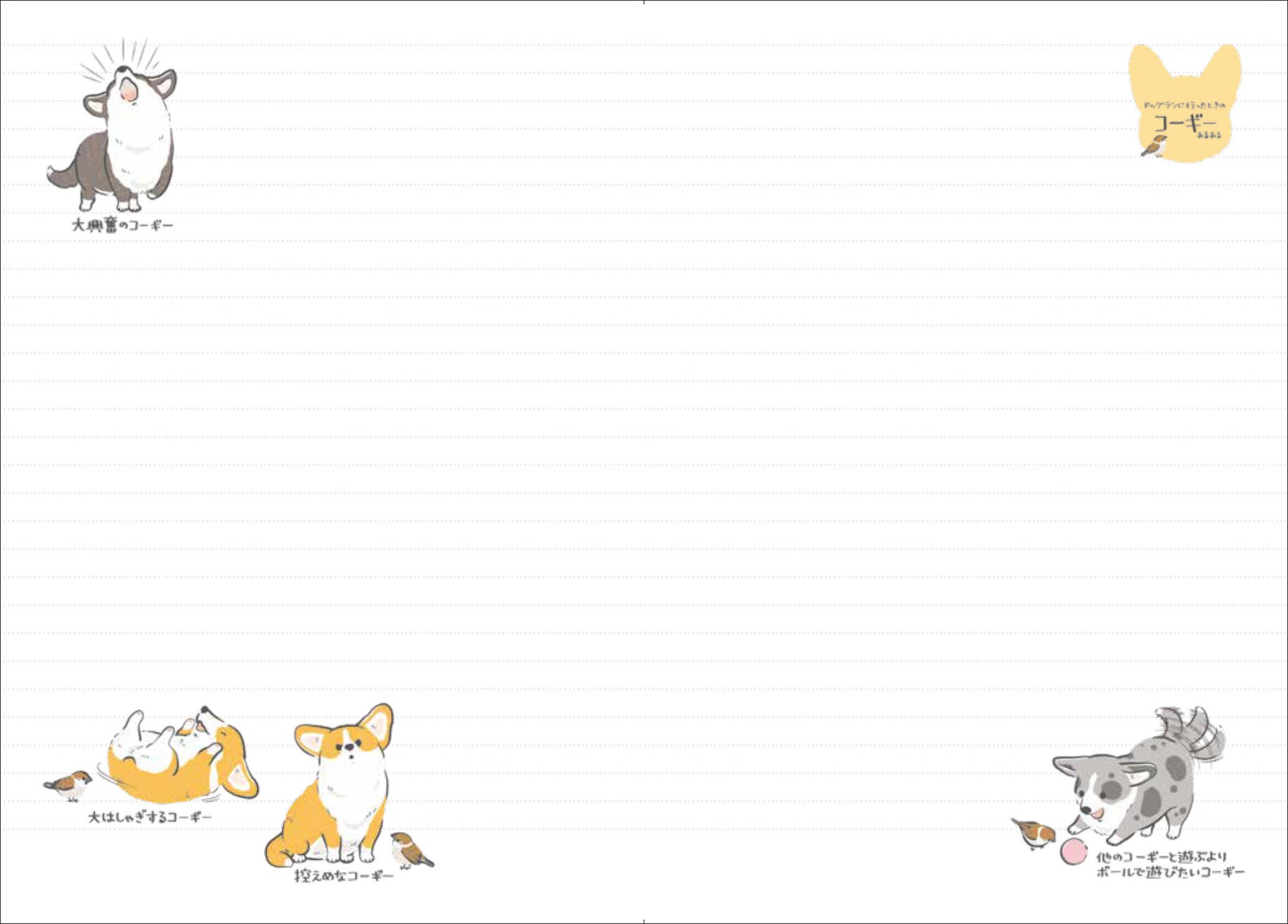 サカモトさんの描くコーギーは細かな描き分けが特徴。毛の長さはもちろん、毛色の違いやシッポの有無まで作品にされています。コーギーと一緒に暮らす飼い主さんからは「うちの子みたい!」と喜びの声が多いため、『コギまるけダイアリー』でもさまざまなコーギーが登場。オールカラー、全ページコーギーまみれなので、どのページをめくっても毎日楽しめます!