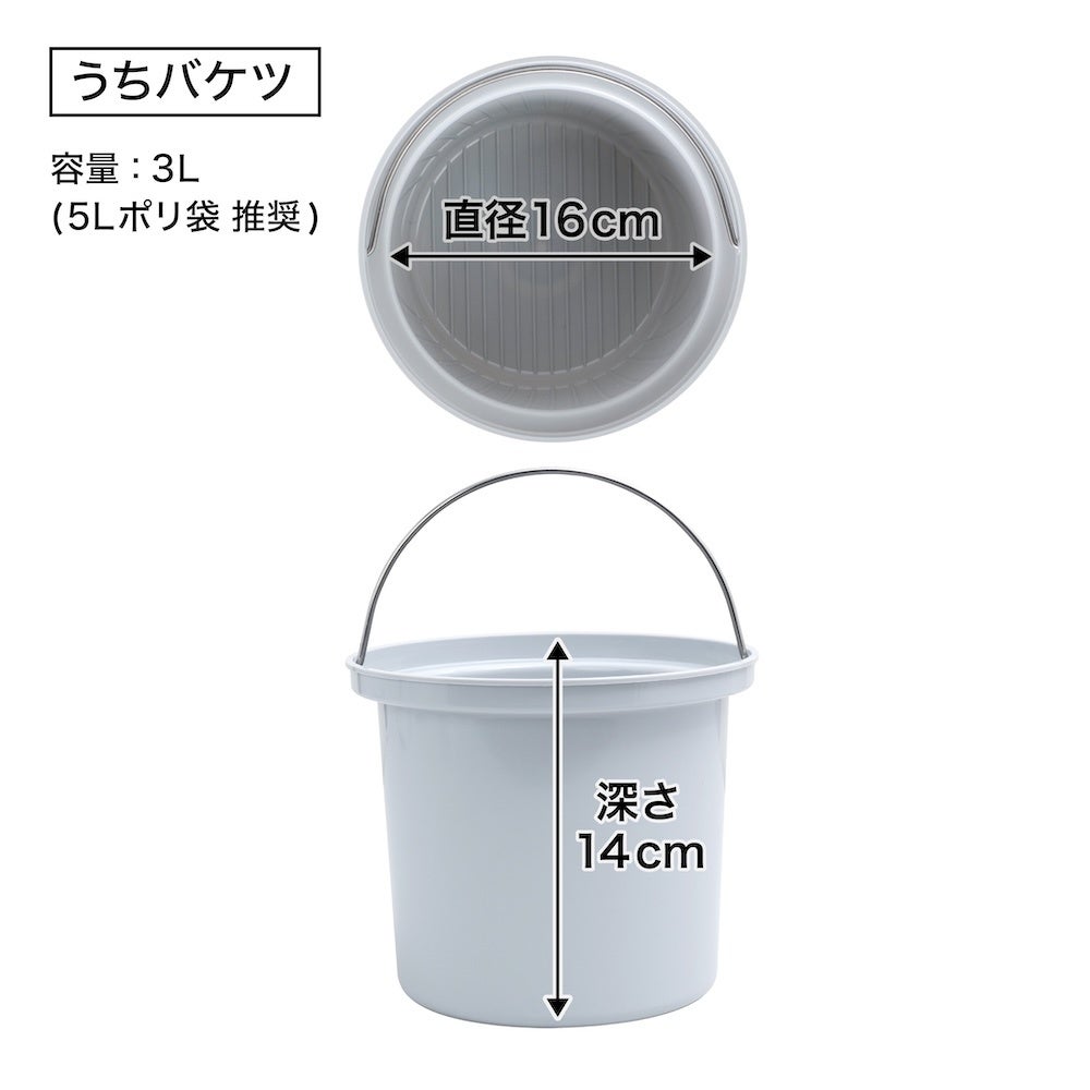 ■袋が掛けられる「うちバケツ」付きで清潔に使える