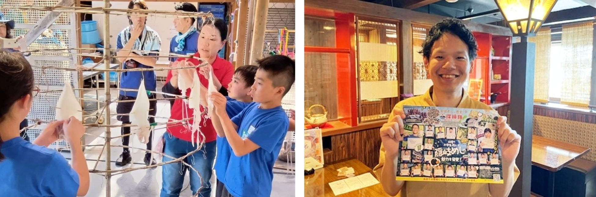 そして、隠岐にちなんだメニューを提供する松江市の居酒屋「松江の台所こ根っこや」で、子どもたちが調理したカメノテやイカの一夜干しを使ったメニューが提供されます。また子どもたちが考えた隠岐めしのキャチコピーや体験を発信するチラシが客席に設置されることで、店舗を訪れた県内外のお客様に隠岐めしをPRします。