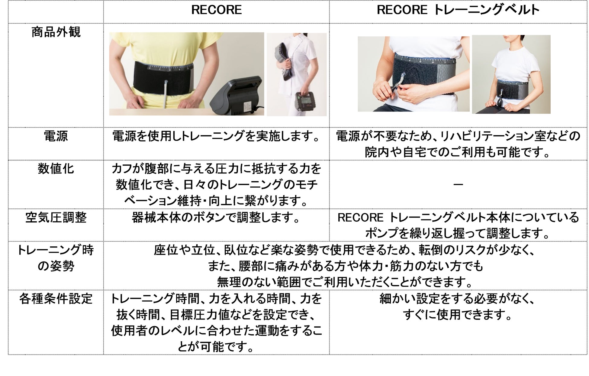 RECOREに対して上記のようなご要望があり、電源を必要とせず「RECORE」と同様の理論での体幹トレーニングを可能とした「RECORE トレーニングベルト」を発売いたしました。