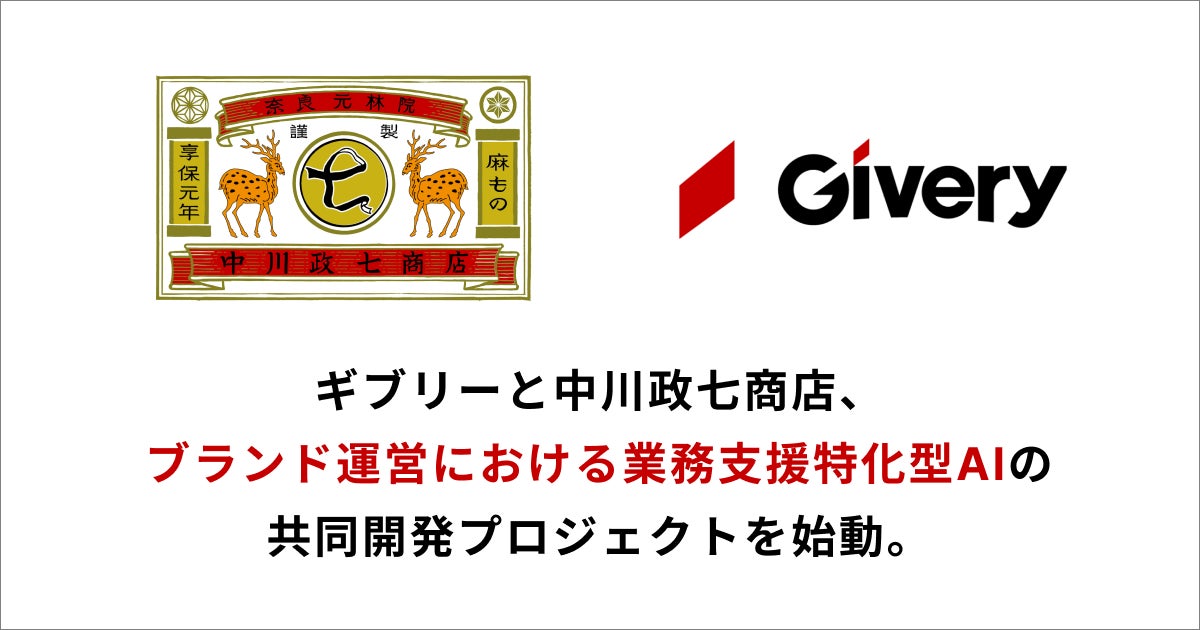生成AIの法人活用支援サービスおよびマーケティングDX支援サービスを展開する株式会社ギブリー(本社:東京都渋谷区、代表取締役社長:井手高志、以下ギブリー)は、1716年創業の奈良の老舗である株式会社中川政七商店(本社:奈良県奈良市、代表取締役社長 十四代:千石あや、以下中川政七商店)と共に、生成AIを活用したブランド運営における業務支援特化型の開発プロジェクトを開始いたしました。