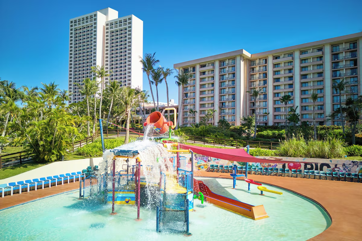 グアム観光の中心地であるタモンに位置する「パシフィック アイランド クラブ グアム」はグアム最大級のウォーターパークがあるテーマパークリゾートです。大人から子どもまで楽しめるアクティビティが盛りだくさん。たくさんの熱帯魚を集めた世界で8つしかない珍しい「泳げる水族館」やスプラッシュプールなどの施設があり、ホテル内だけでも一日中遊べます。ファミリー旅行におすすめのホテルです。