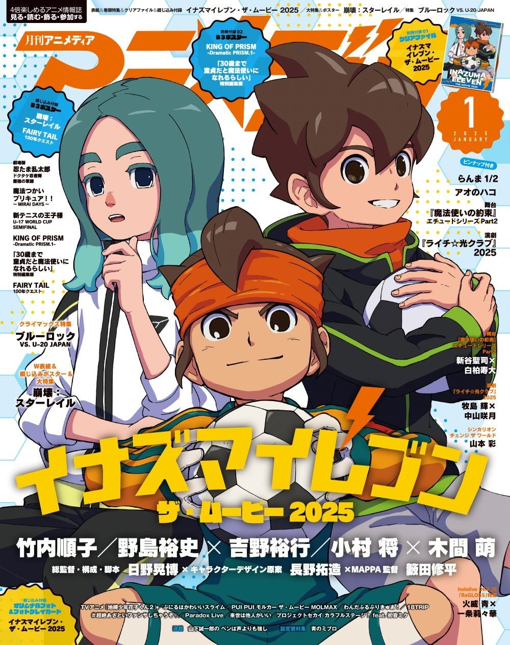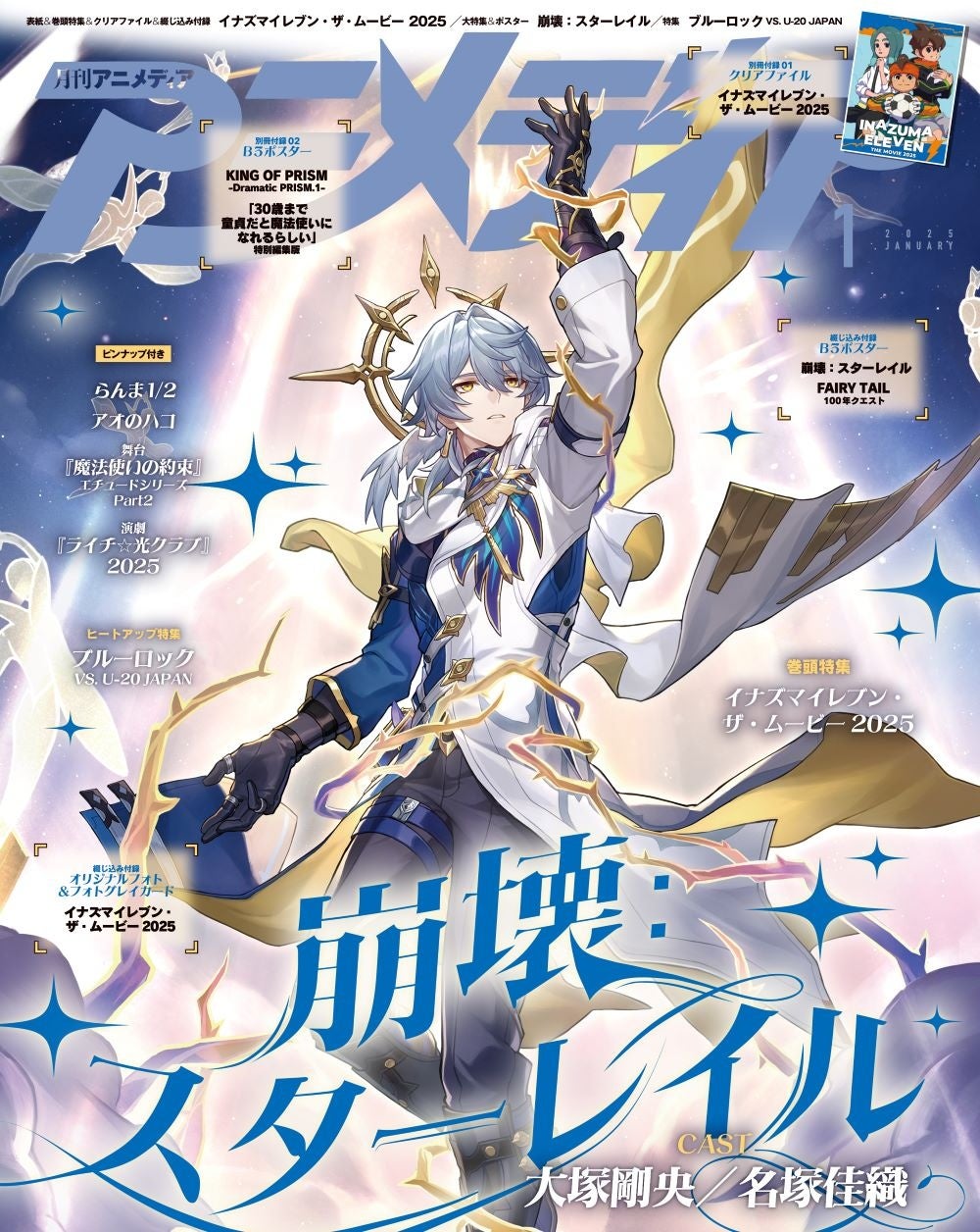 12月10日発売のアニメディア1月号、表紙は『イナズマイレブン・ザ・ムービー 2025』。Wカバーは『崩壊:スターレイル』!