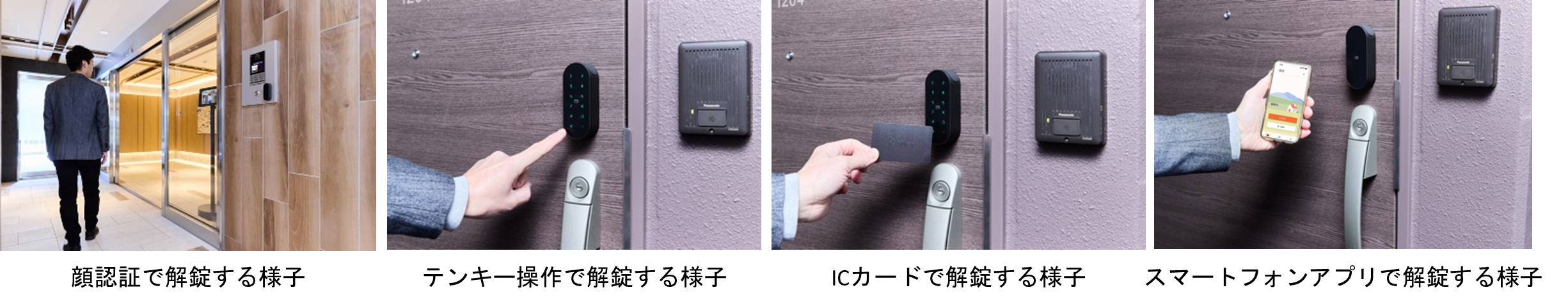 共用部:顔認証、ICカード、スマートフォンアプリ、モバイルFeliCa