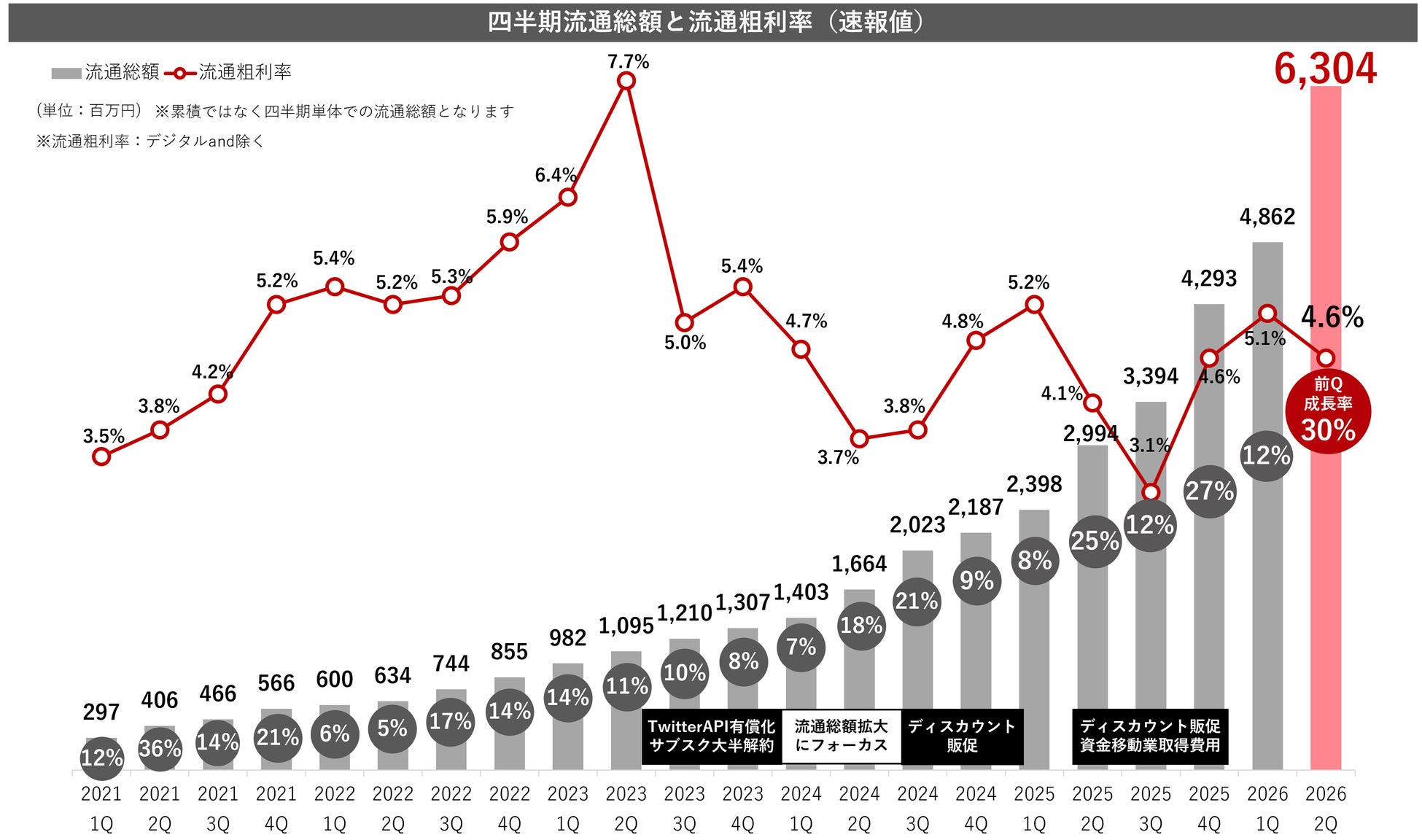 その結果、当第2四半期においては、大口案件の獲得および既存取引の拡大により流通総額が大きく伸長し、24四半期連続成長を実現いたしました。特に、新規案件の獲得が進んだことにより、流通の積み上がりに寄与しております。