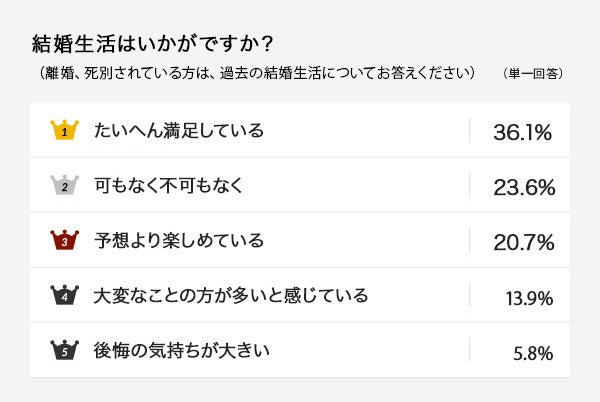 「結婚は人生の墓場」なんてもう古い!? 56.8%が結婚満足度の高い結果に