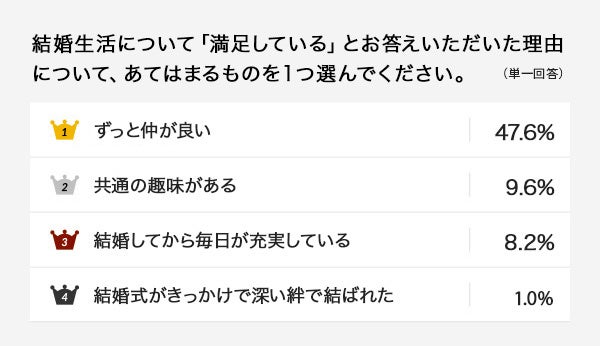Q.結婚生活について「満足している(※1)」とお答えいただいた理由について、あてはまるものを1つ選んでください