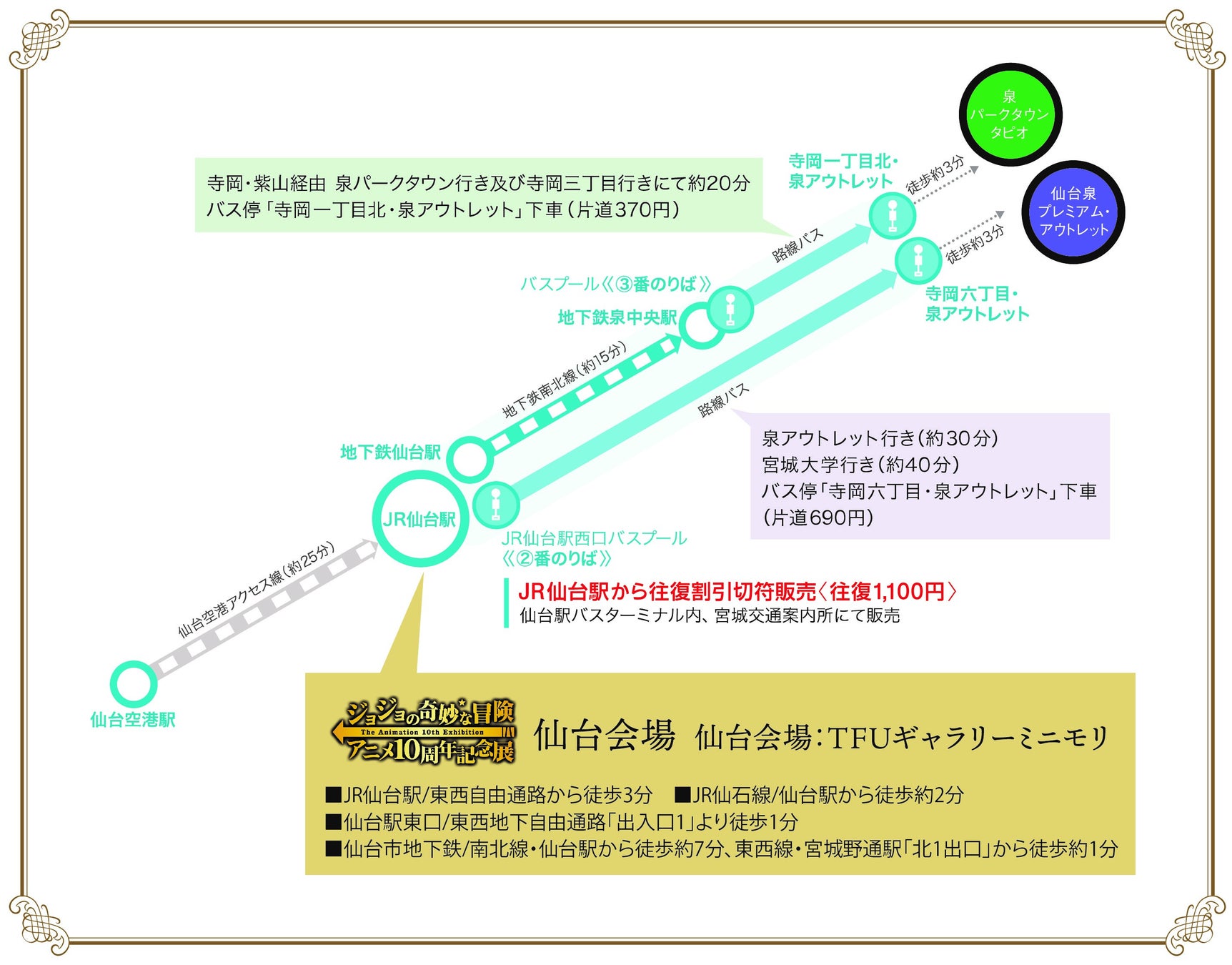 仙台での記念展開催に際し、本イベントにより、仙台エリアのさらなる盛り上げにも貢献してまいります。「『ジョジョの奇妙な冒険』アニメ10周年記念展」や仙台観光と一緒に、ぜひお楽しみください。