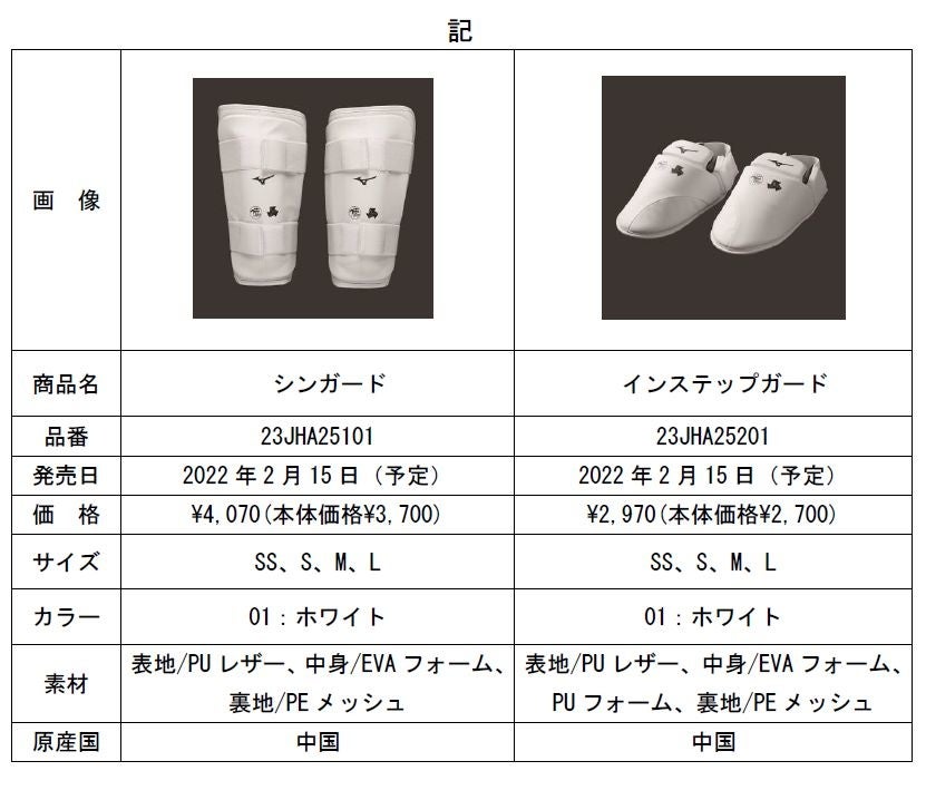 ミズノは、公益財団法人全日本空手道連盟(全空連)の検定品と公益財団法人全国高等学校体育連盟(高体連)の指定品を初めて共通化した空手道・組手競技用防具「シンガード」「インステップガード」を、2月15日(火)に全国のミズノ品取扱店で発売します。