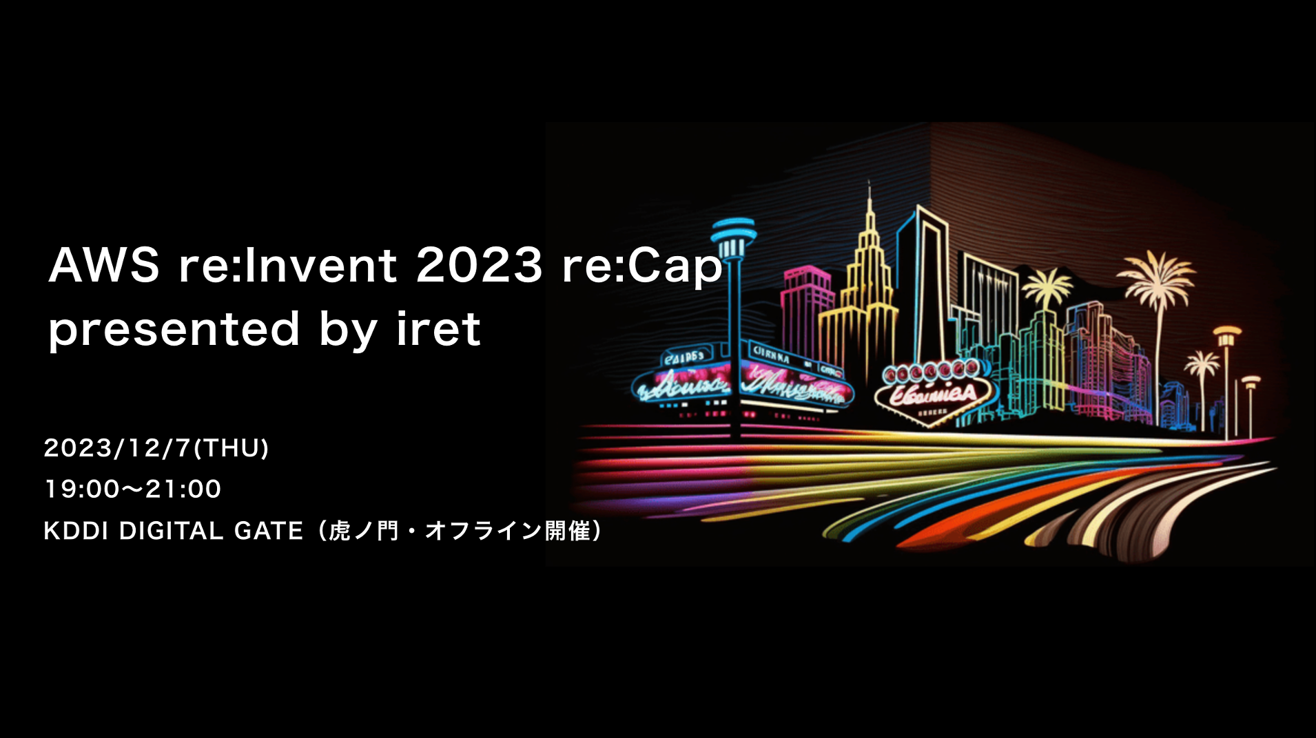 「AWS re:Invent 2023 re:Cap presented by iret」は、11月27日 (月) 〜 12月1日 (金) に米国ラスベガスにて開催される AWS 最大のグローバルイベント「AWS re:Invent 2023」を振り返るセミナーです。