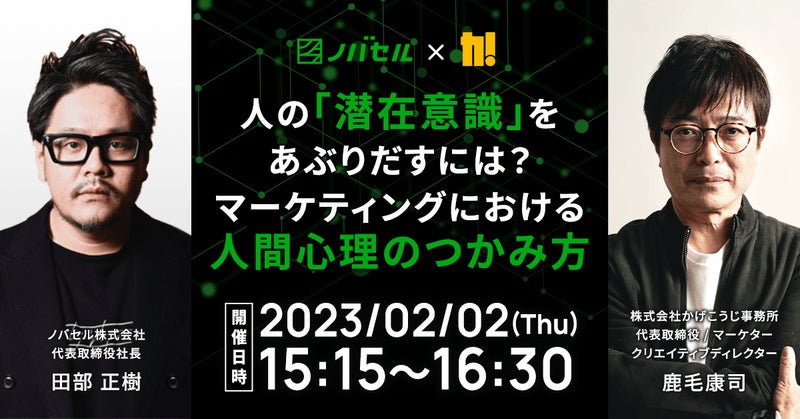 【鹿毛 康司氏登壇_ノバセル無料オンラインセミナー】人の「潜在意識」をあぶりだすには?マーケティングにおける人間心理のつかみ方