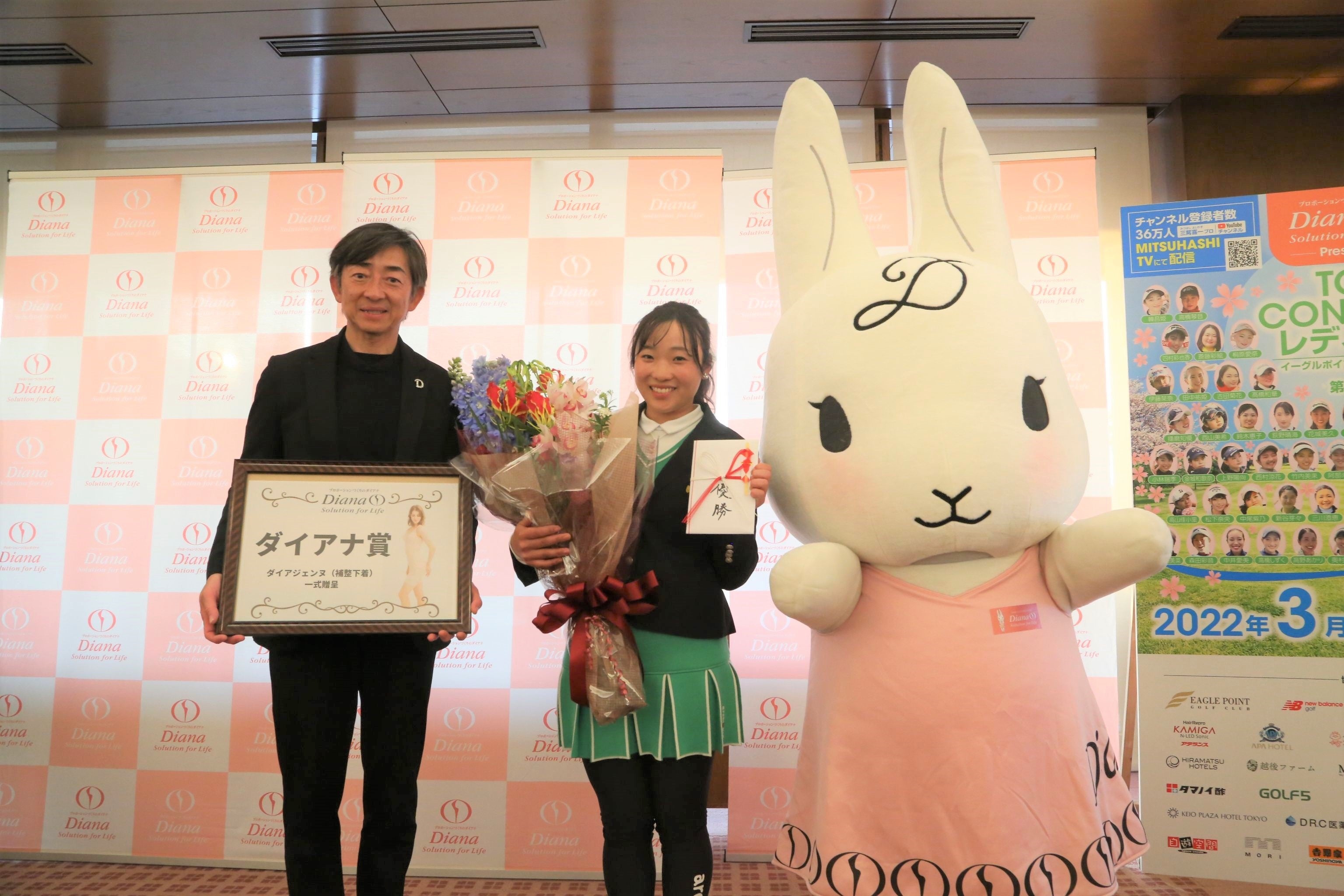 優勝は、2アンダーのスコアで瀬賀百花選手が獲得。優勝賞金30万円のほかに、ダイアナからダイアジェンヌ(補整下着)一式を含む、各協賛企業から総額95万円相当(賞金含む)の賞品が贈呈されました。