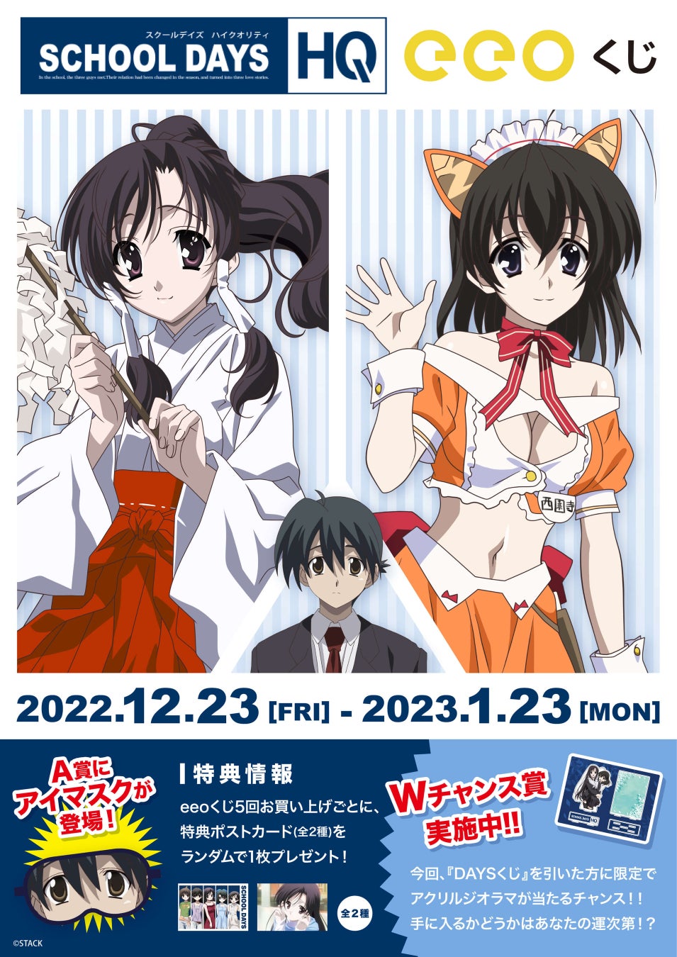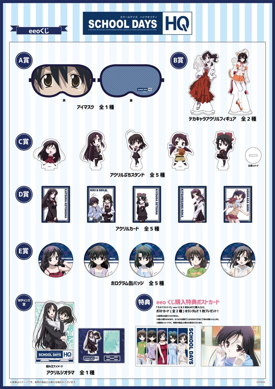 『School Days』など「DAYSシリーズ」のオンラインくじ「eeoくじ」が発売! 伊藤誠やヒロインたちがデザインされた豪華景品、購入特典やWチャンス賞など盛りだくさん
