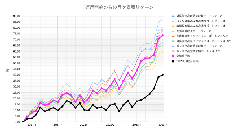 7月にWealth Wingで最も月間成績が良かった戦略は、「高成長高キャッシュフローポートフォリオ」でした。
