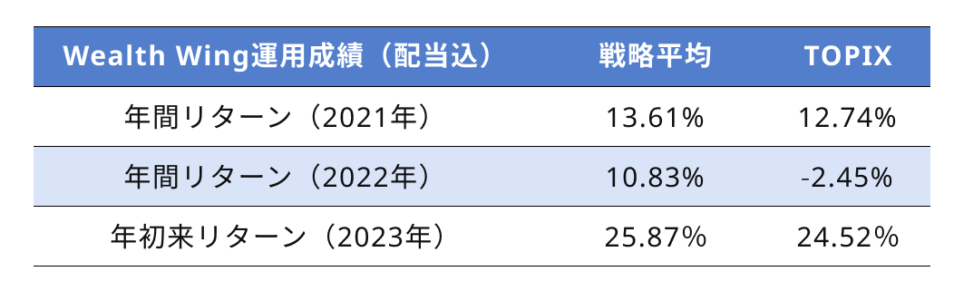 【より詳しい運用状況などはWealth Wingコラム、「2023年7月の運用実績をご報告!!」をご覧ください】