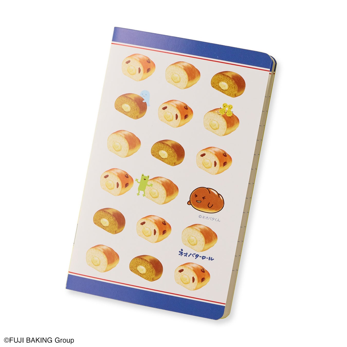 フジパンの人気商品「ネオバターロール」や「ネオ黒糖ロール」、「ネオレーズンバターロール」などが表紙に描かれたミニノートです。キャラクター「ネオバタくん」や「中野マーガリン」、「ちょこちょこ」も随所に登場します。約14×9cmの持ち運びやすいサイズで、外出先でのメモなどに最適です。