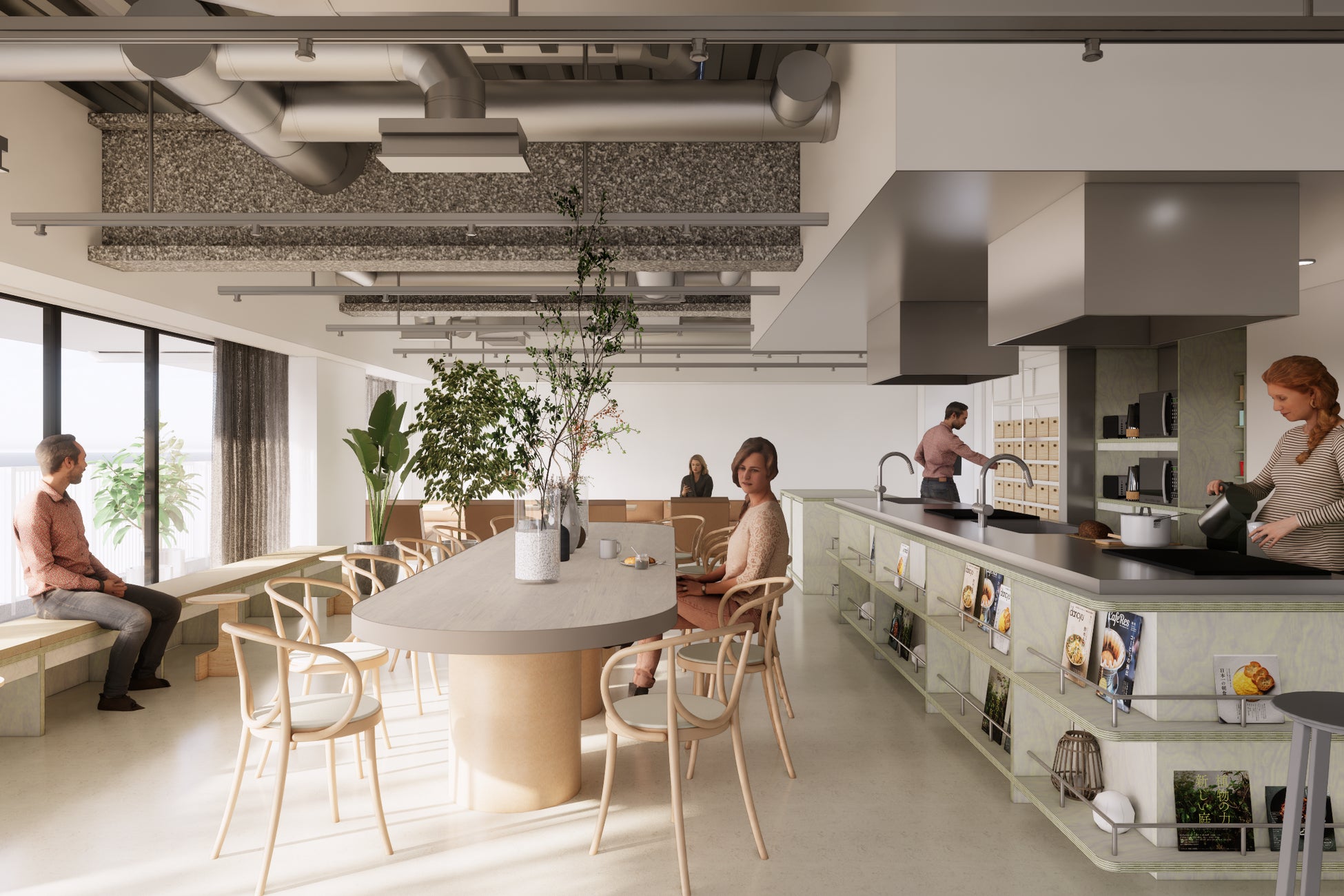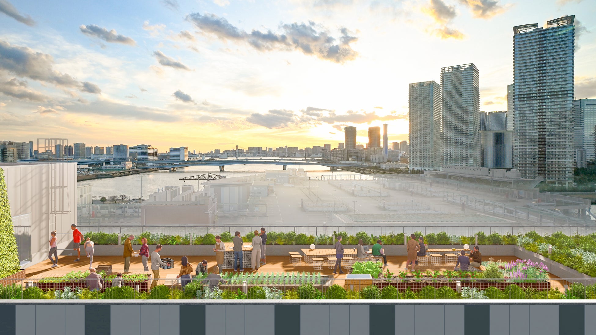 2. レインボーブリッジを臨む屋上菜園付きのルーフトップとラウンジを生かした、農と食を通したユニークな福利厚生を実現