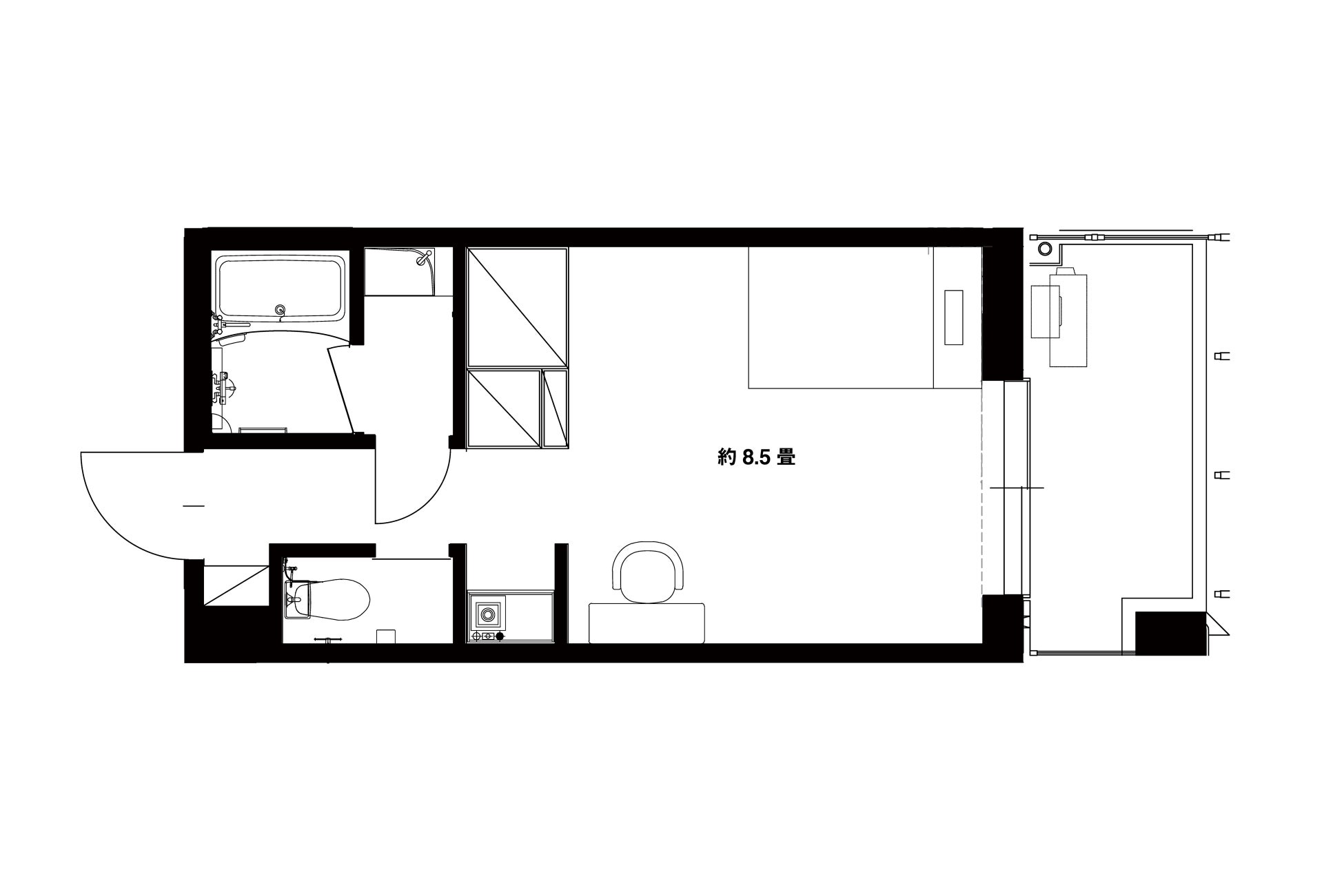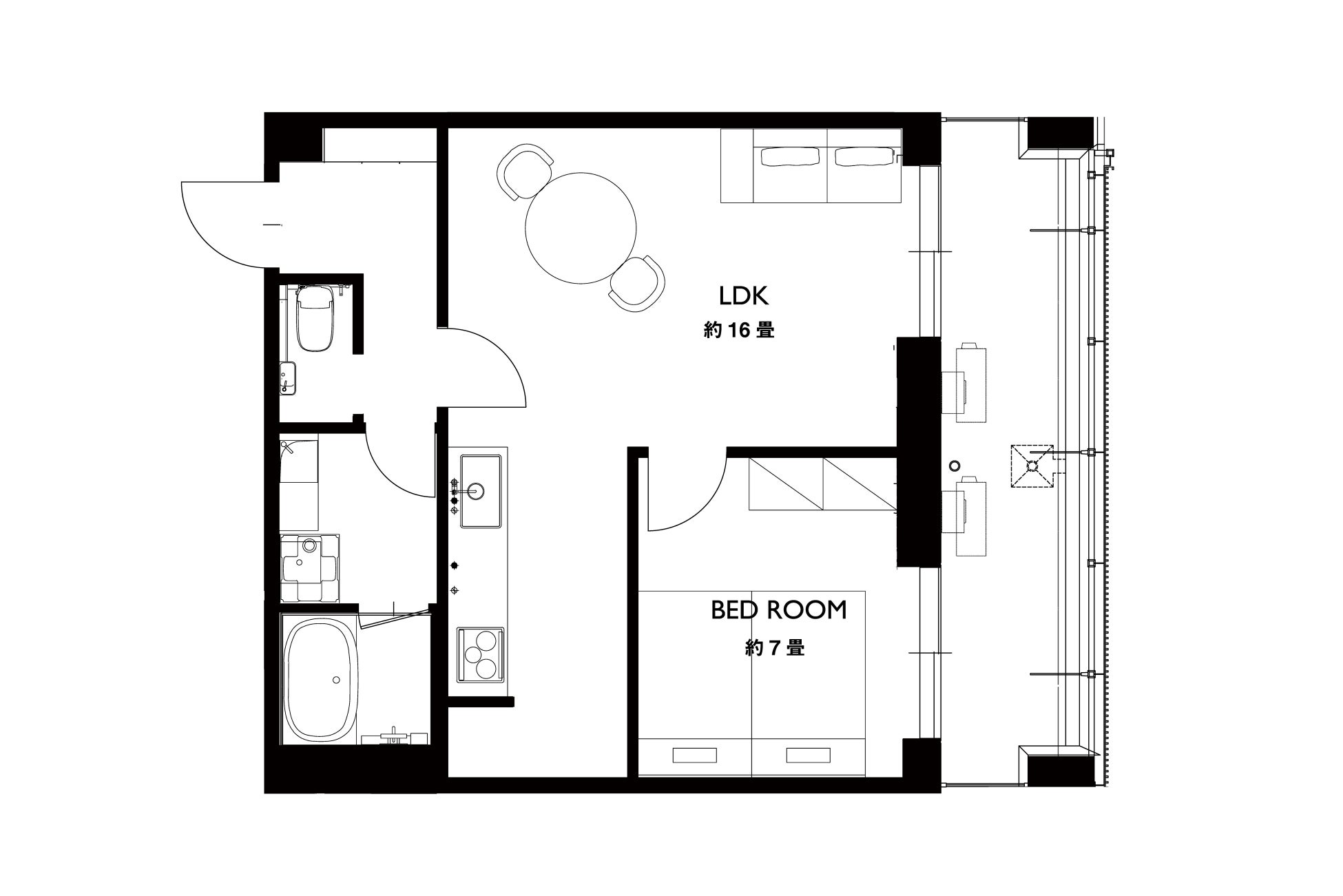 ・居室:25.1㎡の1Rと50.3㎡の1LDKの2タイプ(ベッドや冷蔵庫等の家具家電つき)。