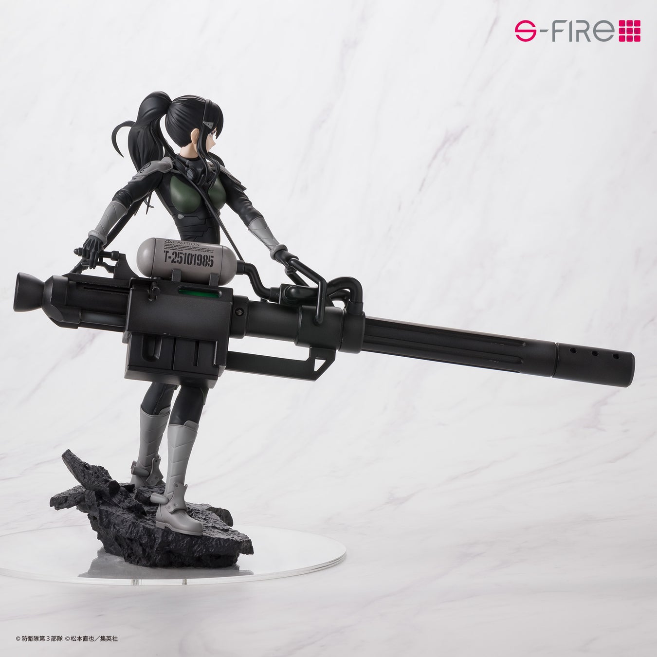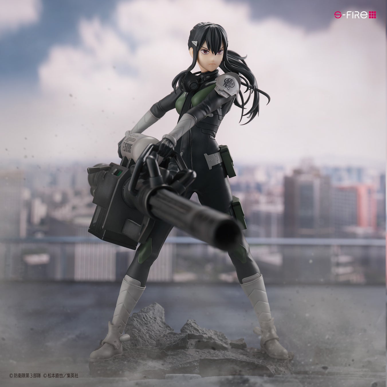 アニメ『怪獣8号』より、第3部隊隊長「亜白ミナ」をS-FIREが1/7スケールでフィギュア化。ターゲットを専用武器で狙い撃つべく戦闘態勢に入る直前の緊張感あふれる劇中シーンをイメージして立体化しました。印象深い専用武器は、劇中描写の迫力を目指してこだわりの造形で表現。