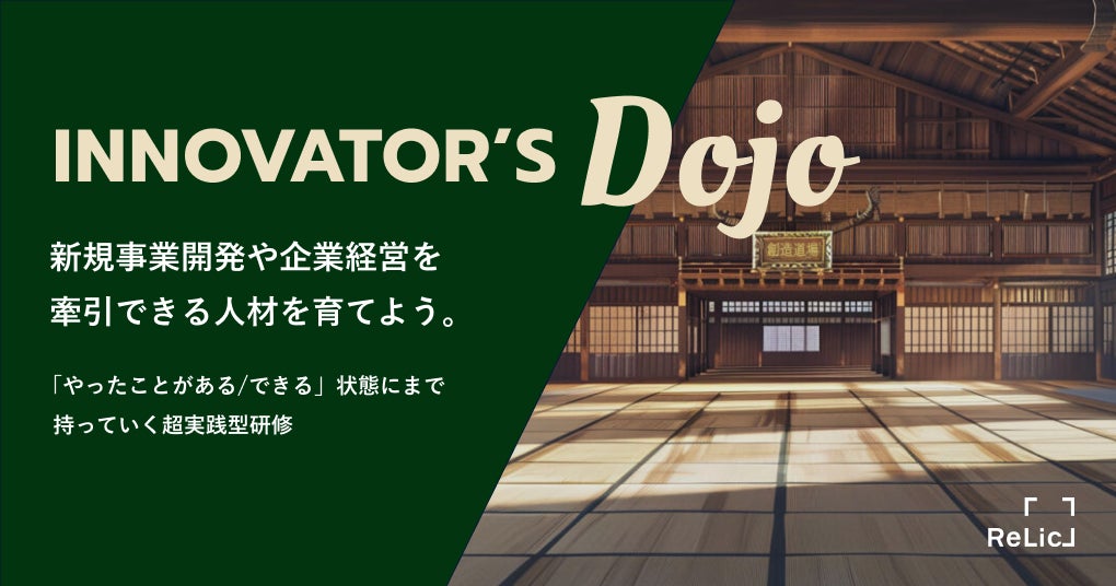 株式会社Relic(本社:東京都渋谷区、代表取締役CEO:北嶋 貴朗、以下「Relic」)は、企業のイノベーション創出を支援する共創カンパニーとして、4,000社・20,000件以上の新規事業開発に携わってきました。同時に「事業を創る人を創る」というビジョンを元に、新規事業開発を担う人材が不足している課題に対しても、様々なアプローチで支援してきました。今回業界で初めて*、”社長に就任し、新規事業開発を通じて修羅場を経験する”機会を提供する超実践型研修プログラム「イノベーターズ道場 powered by Relic」の提供を2024年8月21日より開始します。(*2024年8月 当社調べ 国内の新規事業開発を通じた経営人材育成プログラムの調査・比較)