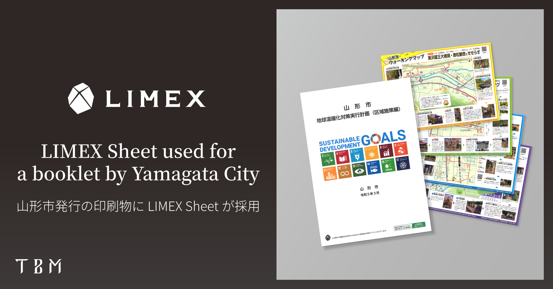 石灰石を主原料とするLIMEX Sheetが、山形市が発行する冊子「地球温暖化対策実行計画」と「ウォーキングマップ」に採用