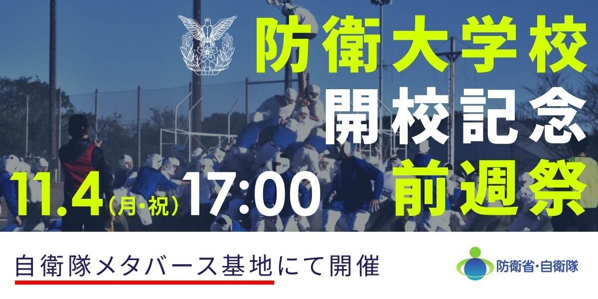 イベント累計動員数3,500万人を超える、国内最大級のメタバースプラットフォーム「cluster」を運営するクラスター株式会社(本社:東京都品川区、代表取締役CEO:加藤直人、以下「クラスター」)は、防衛省と、陸海空自衛官採用ブランディングを手掛けるコミュニケーションデザイン会社の株式会社FIELD MANAGEMENT EXPAND(本社:東京都渋谷区、代表取締役社長:安田浩之)と協業し、メタバース空間を活用した採用プロモーション施策として、自衛隊メタバース基地の3回目となる新たなイベントとして「防衛大学校開校記念『前週祭』!」を開催いたします。