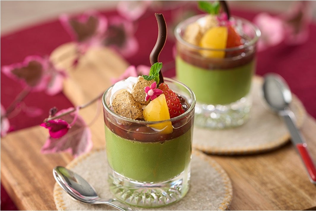 デザートには、和のテイスト溢れる一品をご用意いたしました。なめらかで香り豊かな抹茶プリンにあずきやホイップクリームをトッピング。食後にぴったりなほっとする美味しさをお楽しみください。