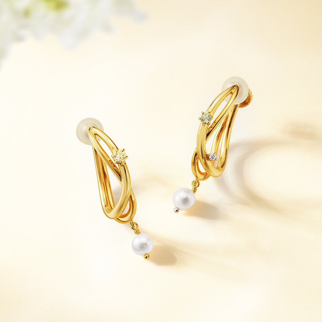 SV(K18YGc) Pierced Earrings / Quartz / Peridot / Pearl / CZ ¥19,800