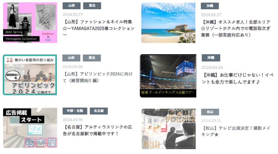 「未経験でも大丈夫?」「福利厚生は充実してる?」「どんな働き方が選べるの?」といった求職者の「気になる」を解決するため、アルティウスリンクならではの特長や働く魅力を、分かりやすく紹介しています。また実際の業務内容や雰囲気をリアルにお伝えできるよう、「スタッフブログ」では業務の裏話や従業員のインタビュー、オフィスの環境紹介などを写真たっぷりで紹介し、応募前の不安や疑問を解消します。