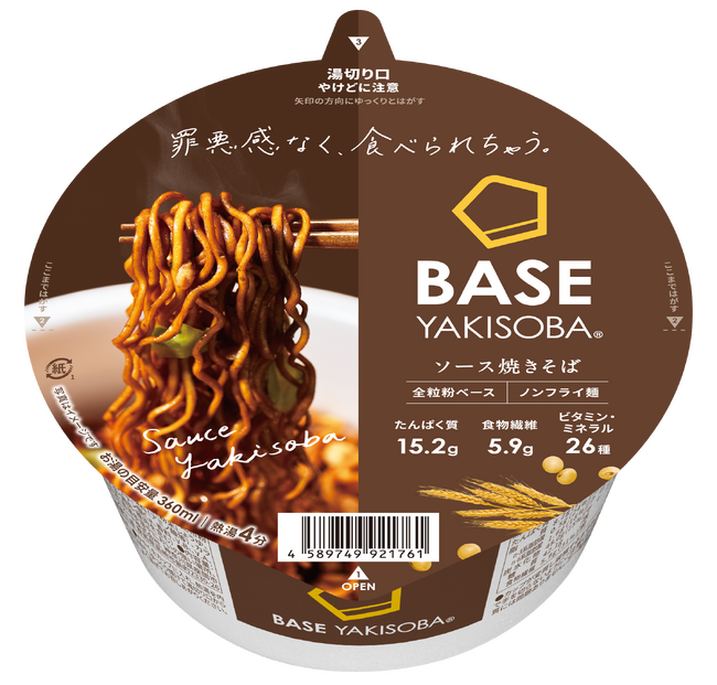 今回リニューアルする「BASE YAKISOBA」シリーズは、そのコンセプトはそのままに、より多くの方に、そしてより継続して食べていただけるよう“おいしさを追求”した「BASE YAKISOBA 3.0」。全粒粉ベースで栄養がバランスよく摂れ、さらにカロリーも塩分も控えめではありますが、今回のリニューアルによって、雑味や独特の風味をマスクされ、また味気なさを感じさせないような満足感のあるおいしさにアップデートしています。カップ麺は「健康に悪そう」「カロリーが気になる」「塩分量が多くて浮腫むのが嫌」と敬遠しているような方、そして「健康なカップ麺なんてどうせ不味いに決まってる」「ベースフードの味には抵抗がある」という方にも是非おすすめしたい商品です。