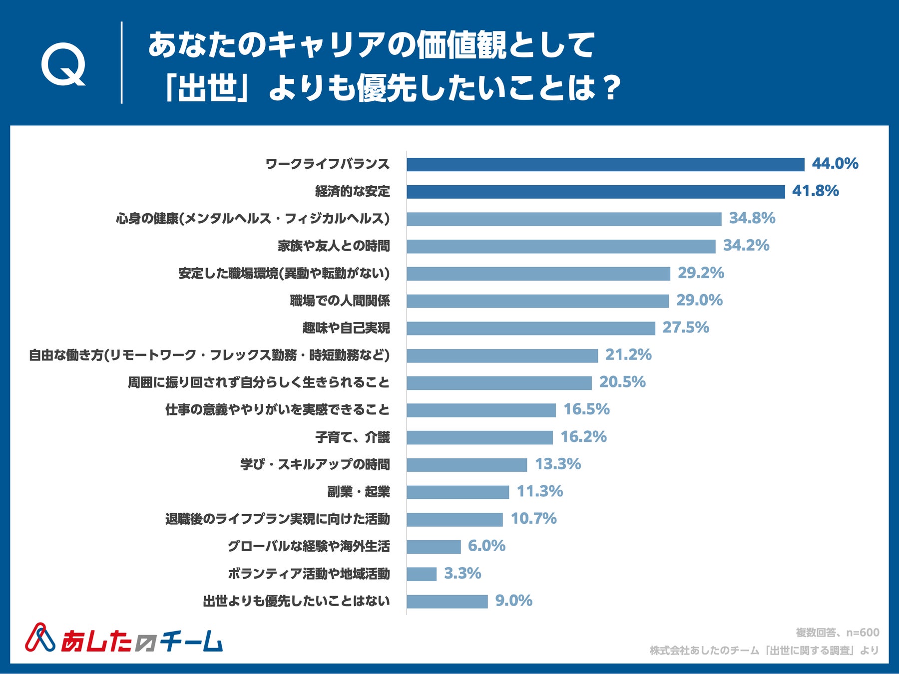 Q. あなたのキャリア観として出世よりも優先したいことをお答えください。(複数回答、n=600)
