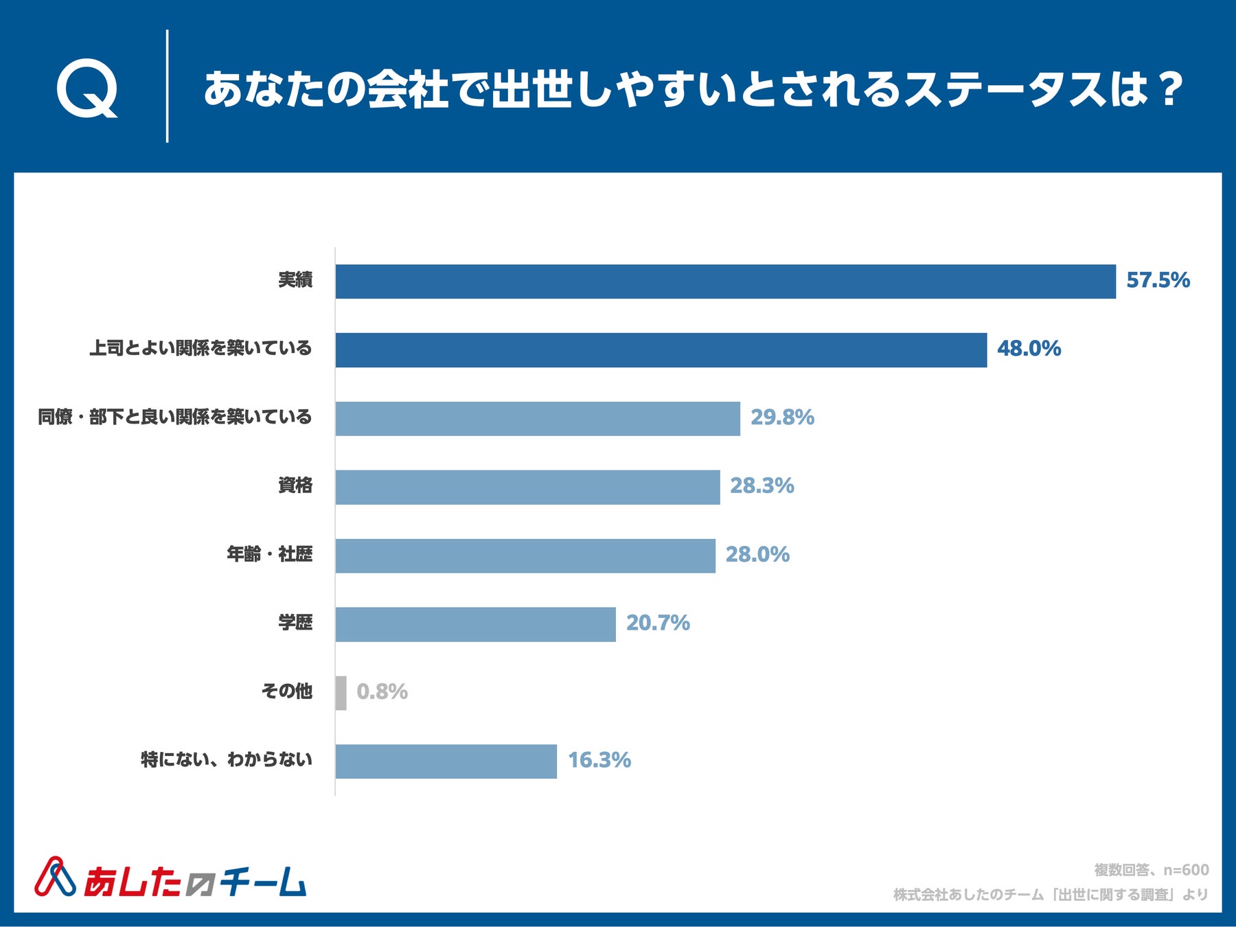 Q. あなたの会社で出世しやすいとされるステータスをお答えください。(複数回答、n=600)